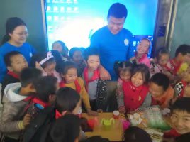 志愿者在课堂上为学生演示趣味小实验,“往高处流的水”、“有孔纸片拖水”,学生们也积极参与其中,亲身参与实验操作。工作人员为此次活动拍摄了小视频及照片用作纪念。志愿者为高年级的学生讲述了中国共产党领导的一次大规模学生爱国运动——一二·九运动,运动中表现出来的爱国主义精神是气壮山河、感人至深的。志愿者利用课间时间与孩子们聊天。不经意的交流,让他们的视野变得更加开阔,使他们学到为人处事的道理,使他们学到实用的知识,使他们的观念进行转变,同时使他们感受到时代的气息和社会的变化。