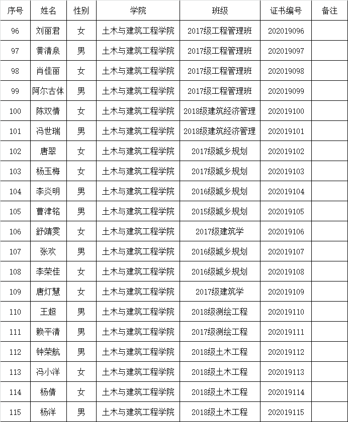 土木与建筑工程学院在“攀枝花学院第19期发展对象培训班”考核合格的同学名单如下: