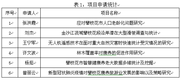 根据《攀枝花市统计学会关于申报2020年度攀枝花市统计科学研究计划项目的通知》、攀枝花学院《关于申报2020年度攀枝花市统计科学研究计划项目的通知》,我院启动2020年度攀枝花市统计科学研究计划项目申报工作。