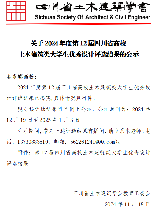 近日,2024年度第十二届四川省高校土木建筑类大学生优秀设计评选结果正式揭晓。我院师生凭借扎实的专业素养和创新能力,斩获一等奖1项、二等奖3项、优秀奖1项,再次展现了学院在土木建筑领域的卓越实力。