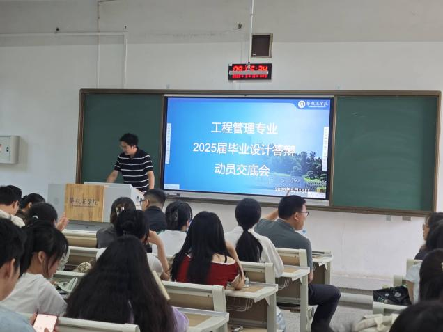 为扎实推进2025届工程管理专业毕业设计答辩工作,切实保障毕业设计质量,为学院本科教学评估工作筑牢基石,工程管理教研室于2025年5月16日召开了毕业设计答辩动员交底会。工程管理教研室指导教师及2025届毕业生参加了此次会议。