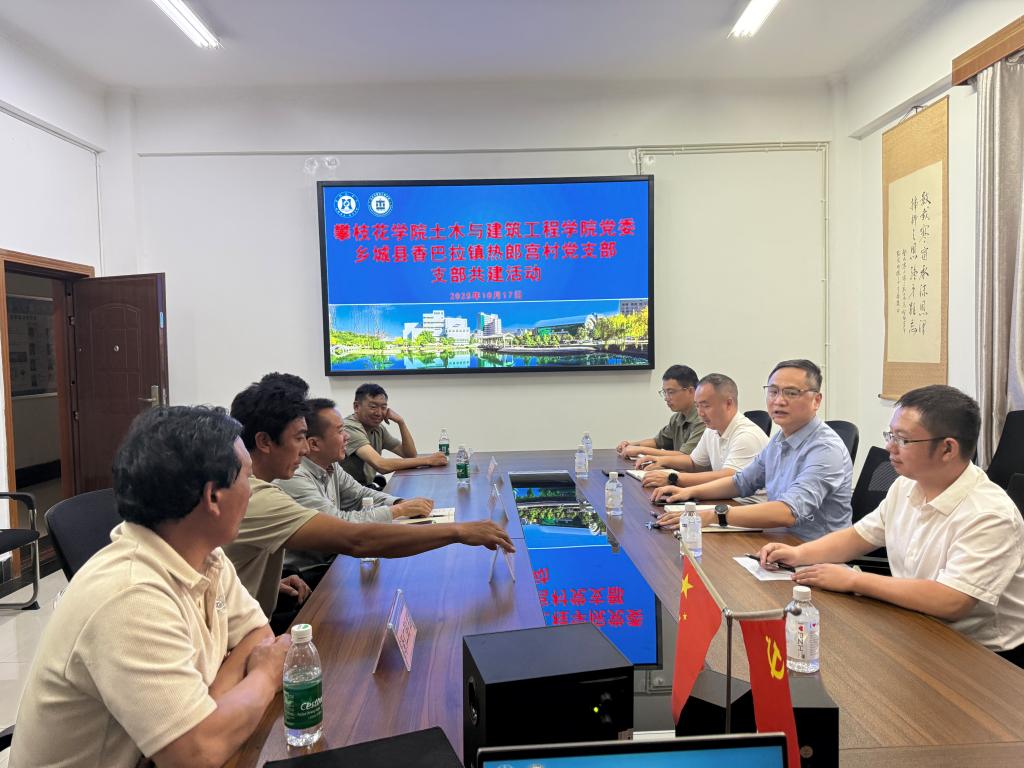 2025年10月17日下午,土建学院党委与甘孜州乡城县香巴拉镇热朗宫村党支部在攀枝花学院励志楼111会议室,开展结对帮扶及支部共建活动。学院党委副书记、院长孙金坤,副院长郭飞飞,党委副书记、纪委书记付建,学生科科长王宁军,乡城县香巴拉镇热朗宫村驻村第一书记史新君,村党支部副书记泽仁彭错,村委会副主任格乃战争,村委会副主任一西,驻村队员扎西多吉等共同参加活动。