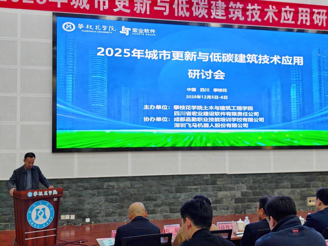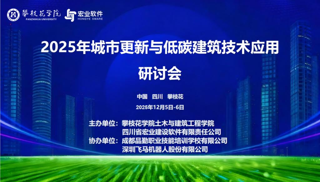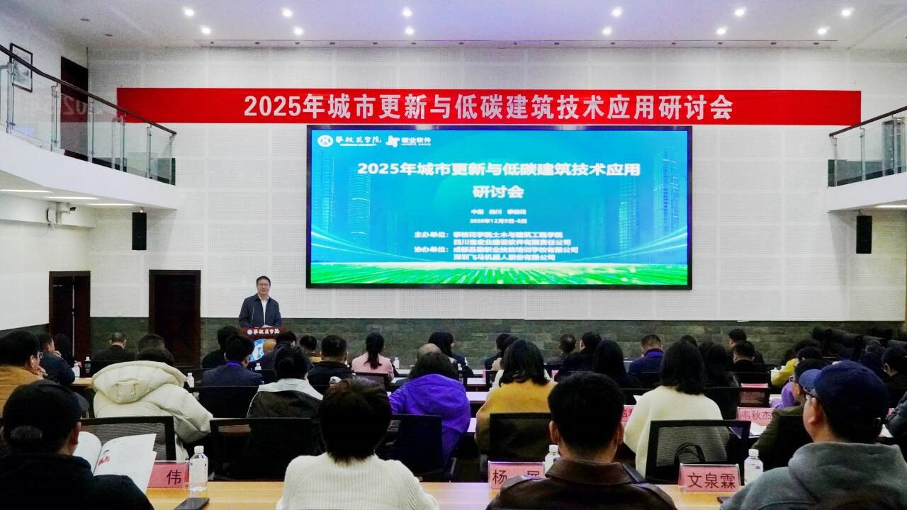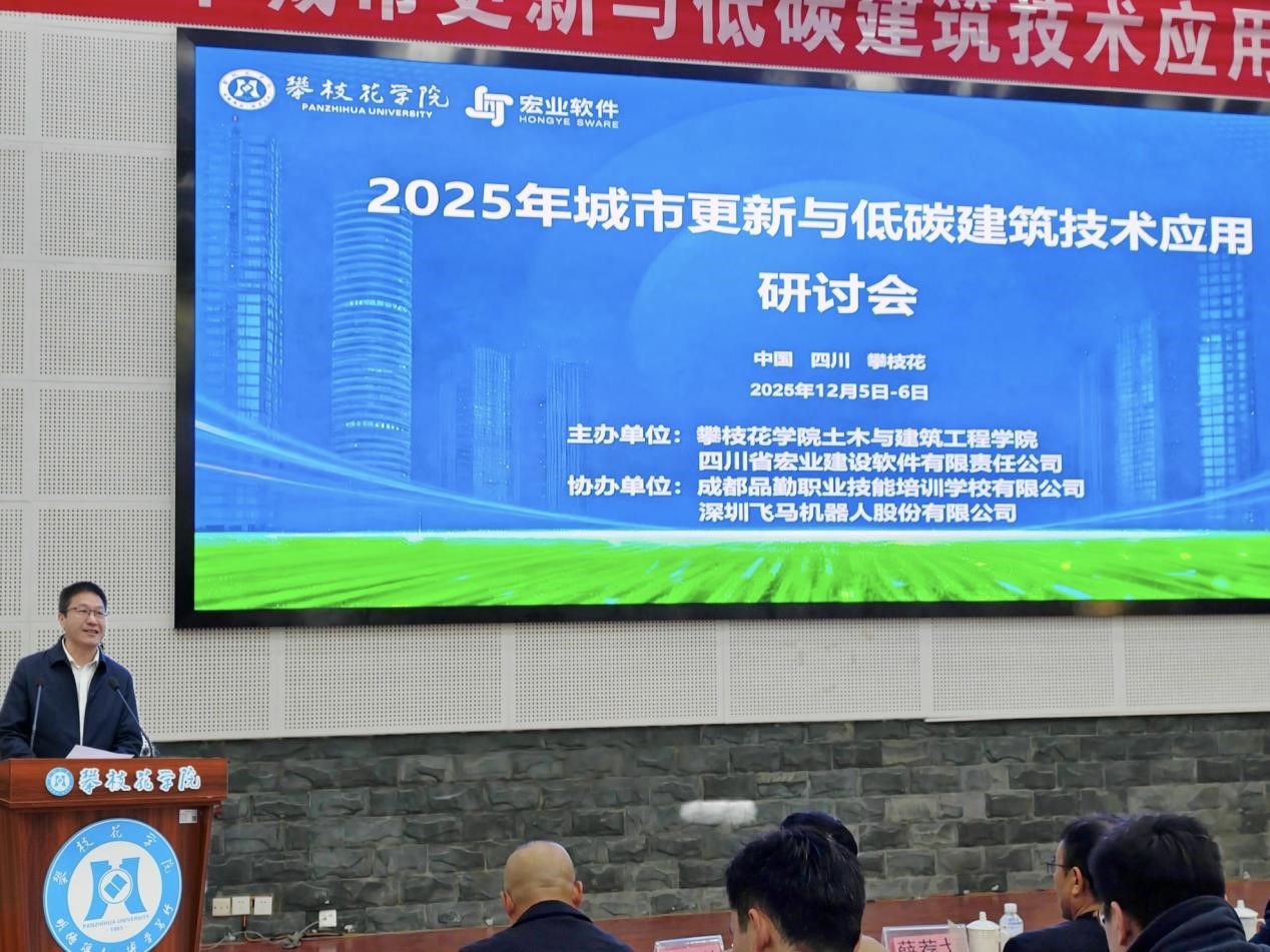 2025年12月5日,城市更新与低碳建筑技术应用研讨会在攀枝花学院图书馆学术报告厅隆重举行。此次会议在四川省土木水利类专业教学指导委员会的指导下,由攀枝花学院土木与建筑工程学院与四川省宏业建设软件有限责任公司联合主办,成都品勤职业技能培训学校有限公司及深圳飞马机器人股份有限公司协办。会议汇集了建筑领域的专家学者、土建类专业领导与骨干教师、行业企业代表等多方人士,围绕“城市更新与低碳建筑技术”应用政策、实际项目案例以及人才培养等议题,进行了深入交流与探讨。